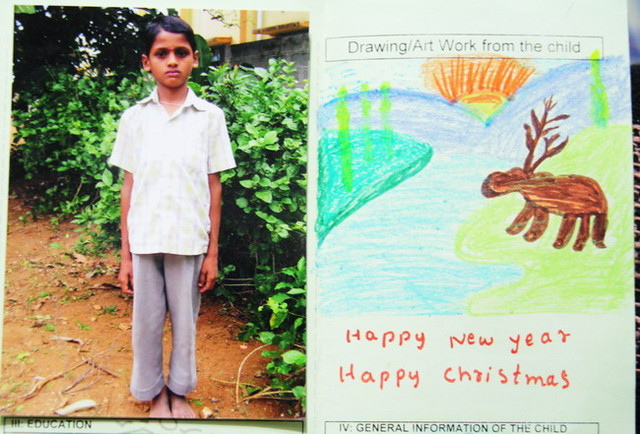 【圖】我認養的印度小男孩史瓦密的近照與他畫的作品。