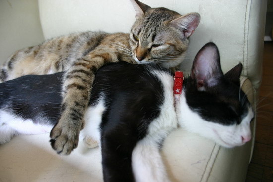 【圖】炎熱的夏天,在咖啡店裡,我們忙碌構思新聞與行動,但貓隻卻慵懶的趴在沙發上,很優閒午睡。