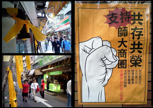 【公民記者/何宗勳報導】這幾天如果走訪台北市龍泉街《師大夜市》,就會發現到處飄滿《黃絲帶》。主因是師大商圈擴張太快,合法與違法店家混合,從不到百家變成六百多家,嚴然成為觀光勝地。