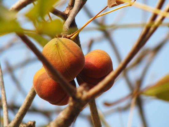 年初一掃完墓,下午三伯帶大家到附近高雄縣湖內鄉「明寧靖王墓地」參觀,沒想到離開前,看到牌樓樹上結了好多大大種子,經過三伯之子介紹,才知道那是俗名「美國花生」。